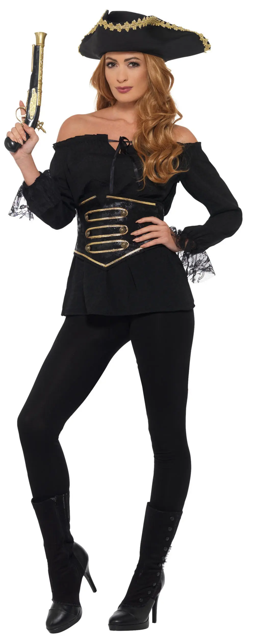 Deluxe Black Pirate Shirt Ladies Costume Accessory