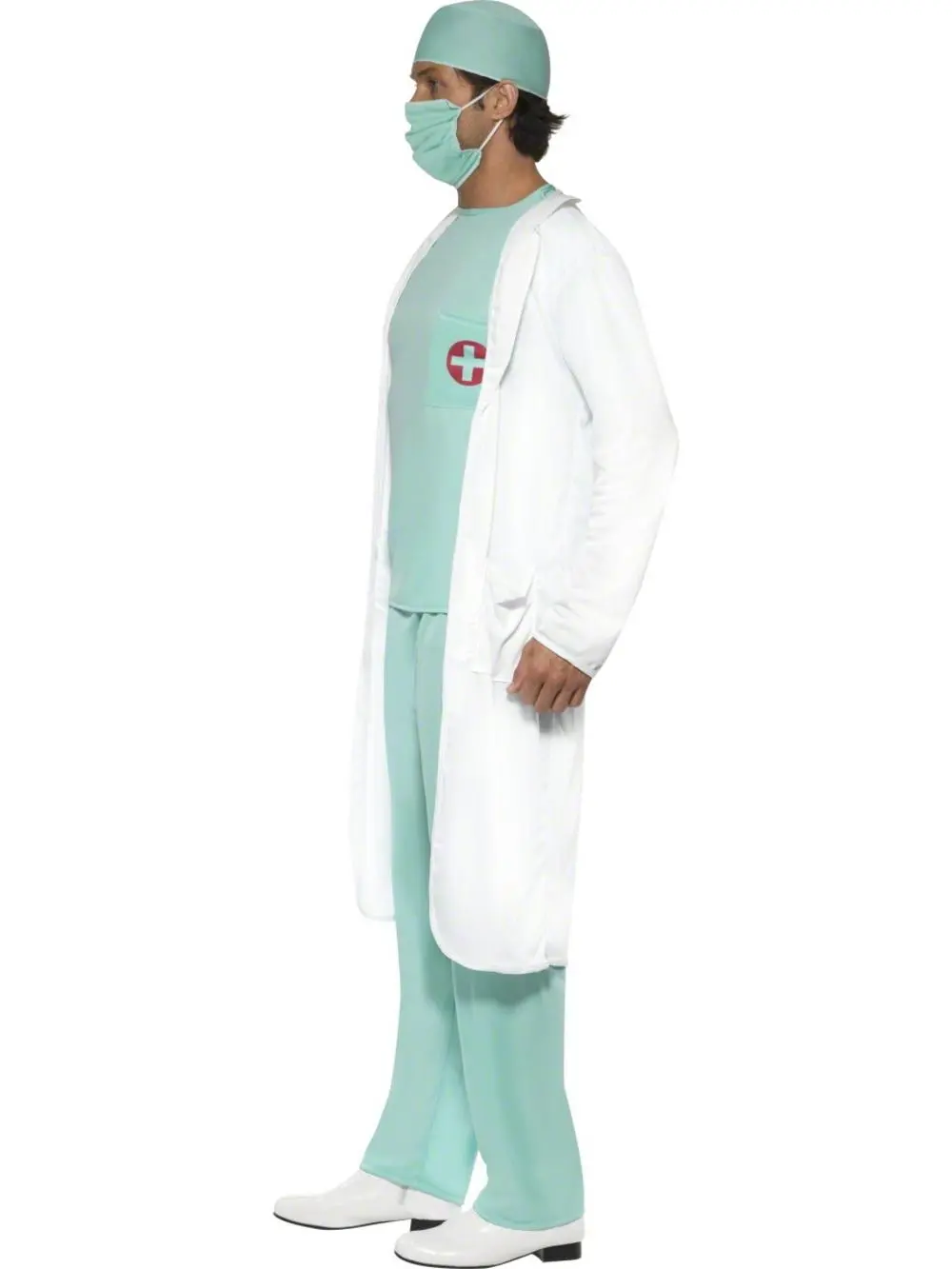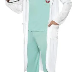 this uniform fancy dress is a clip on name tag and long white doctor’s