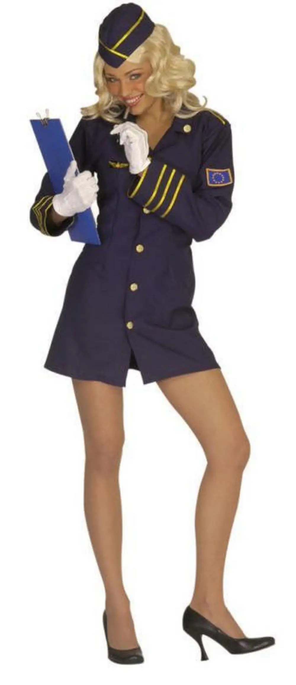 gorgeous air stewardess outfit is a matching dark blue coloured hat