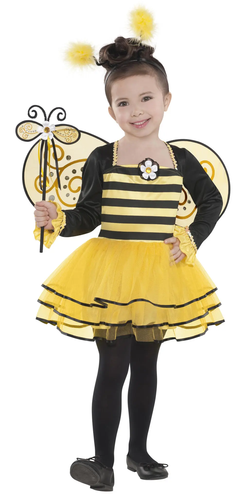 with an attached tutu, headband with fuzzy yellow pom pom antennae, and