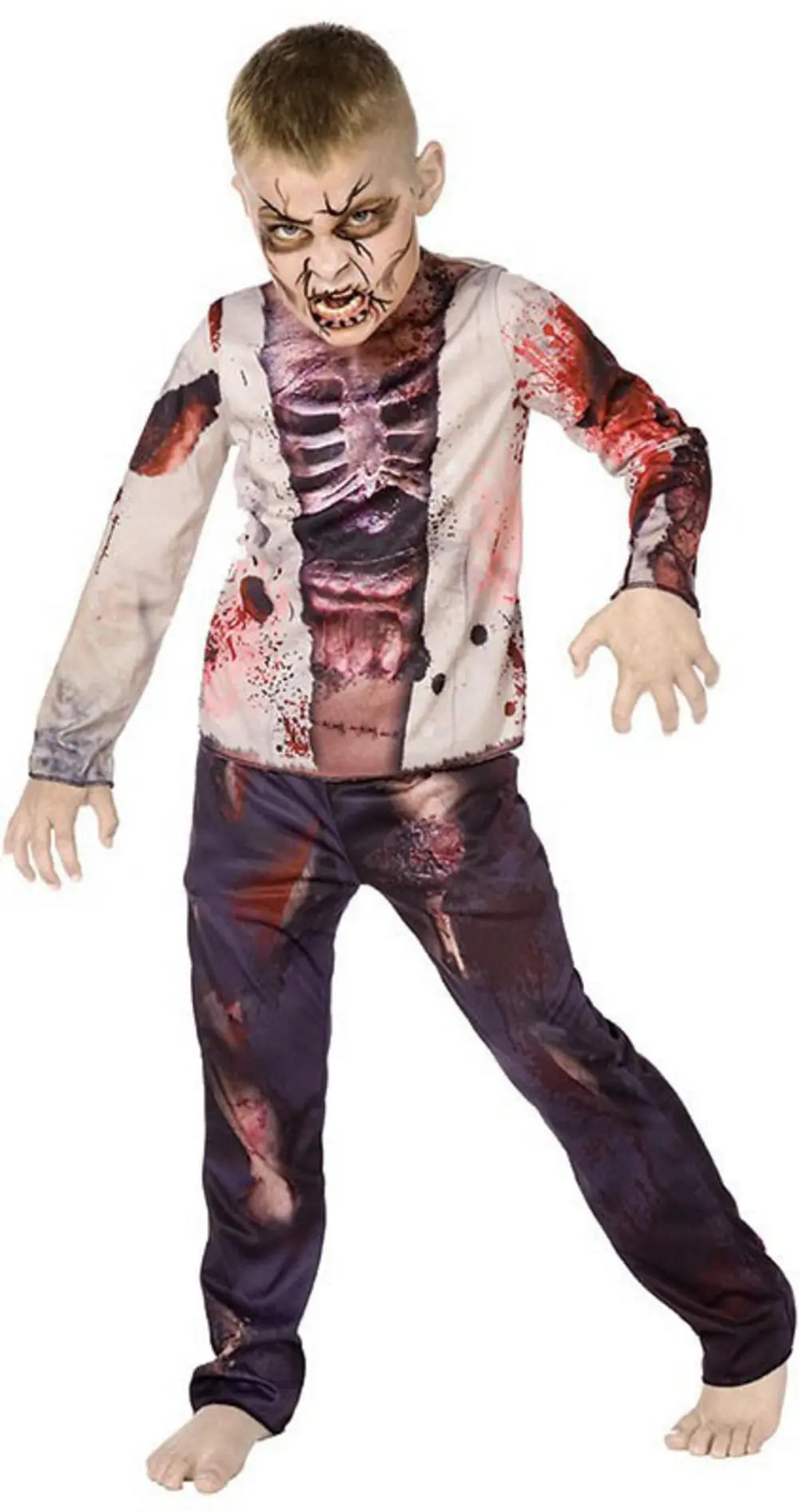 frighteningly good Kids’ Zombie Boy 3D Halloween Fancy Dress Costume.
