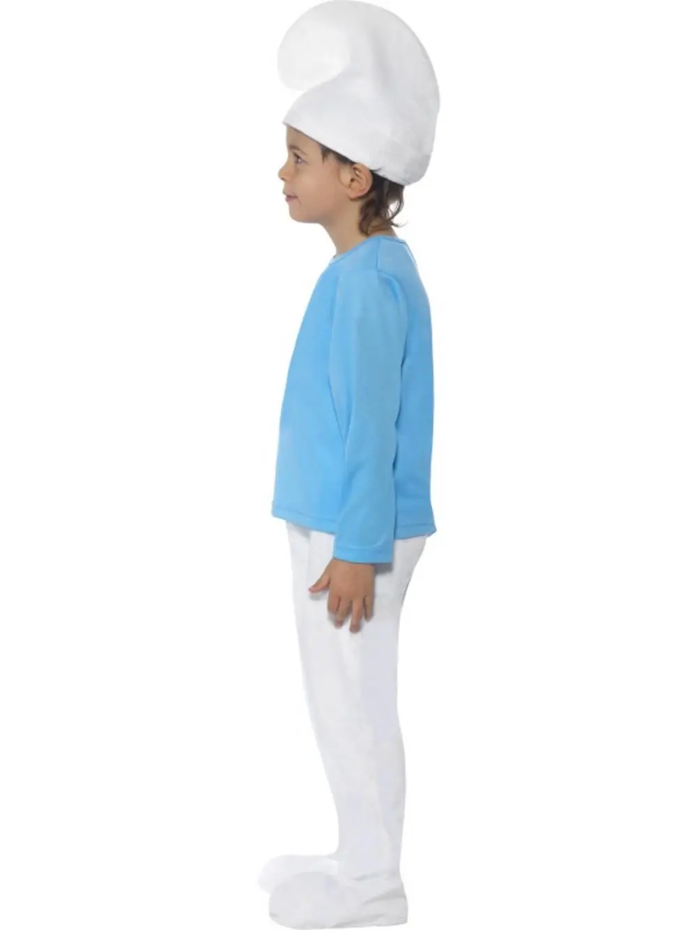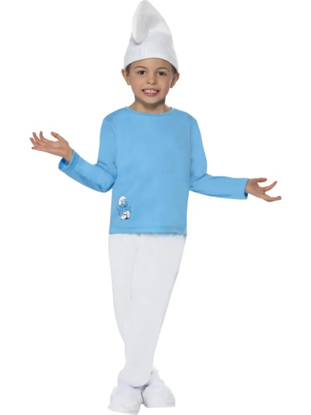 The Smurf fancy dress costume comprises of a long sleeved blue top