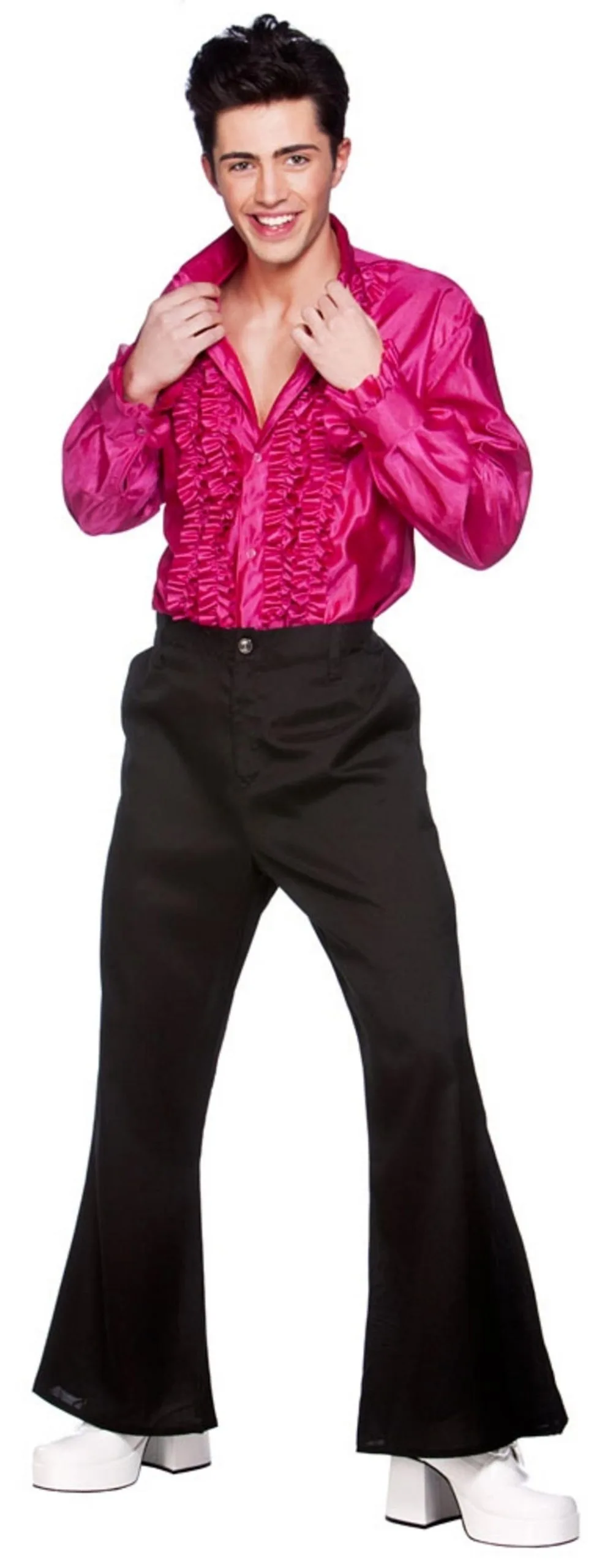 Mens Pink Disco Ruffle Shirt Fancy Dress Costume