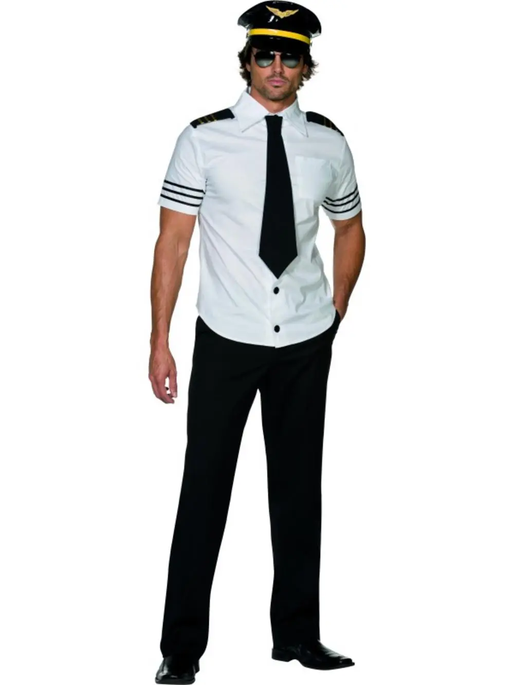 The costume is completed with a black clip on tie and a black pilots hat