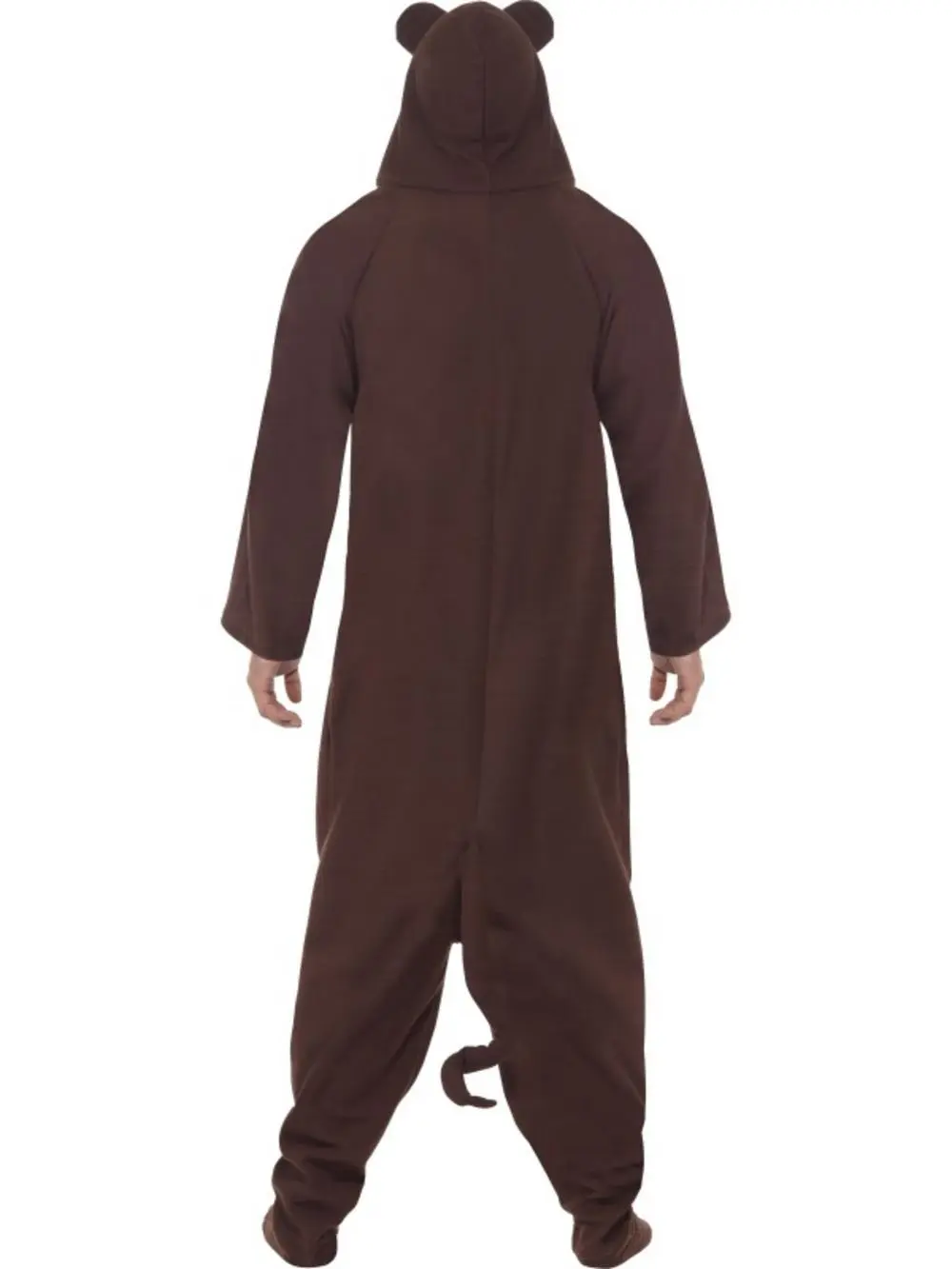 The monkey costume is made of an all in one brown jumpsuit with contrast