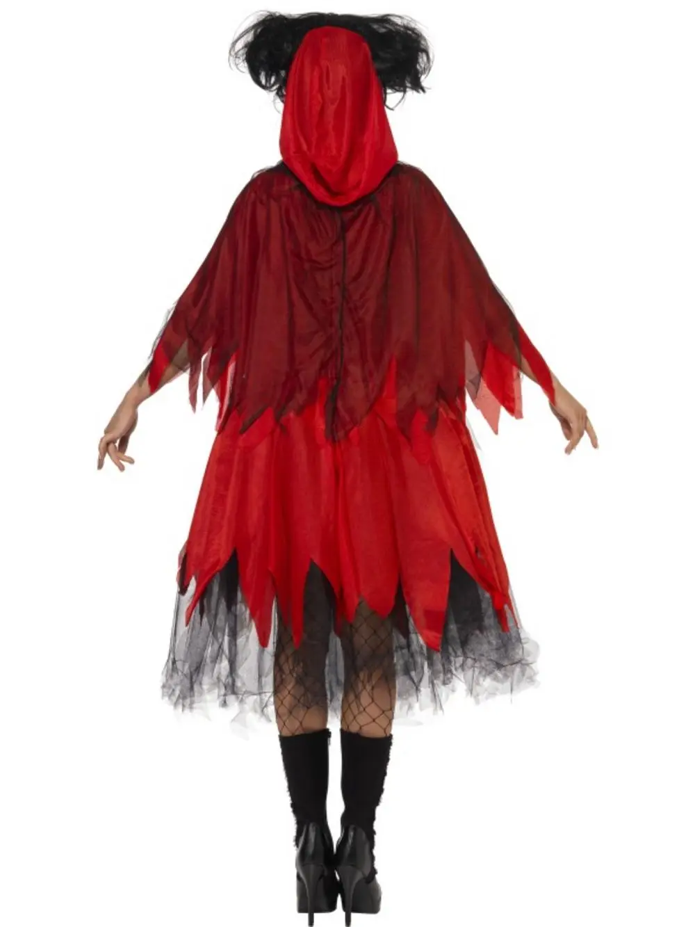 frayed grey fabric. Completing the biting hood fancy dress costume is a
