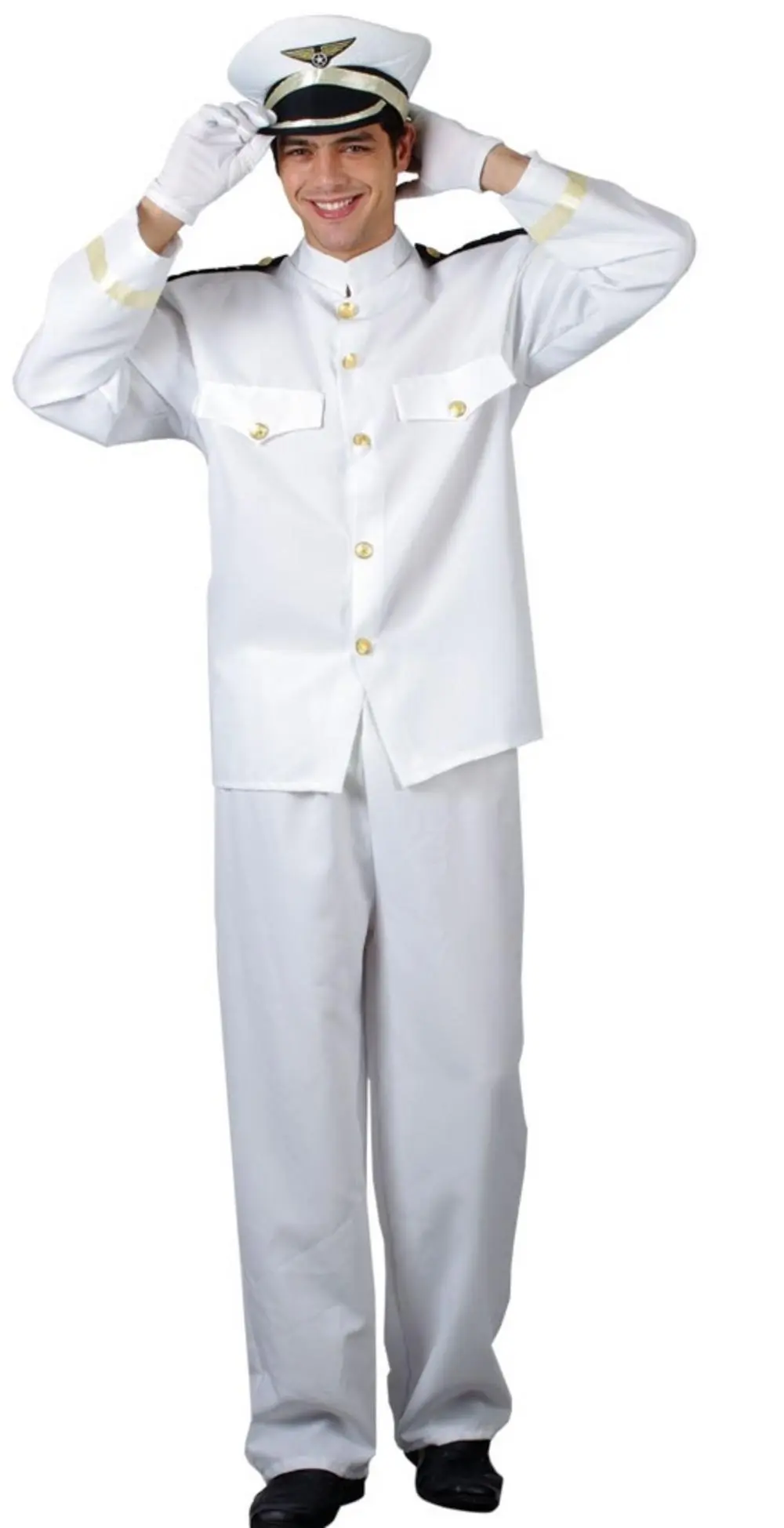 of matching white trousers. Finishing off this smart uniform fancy dress